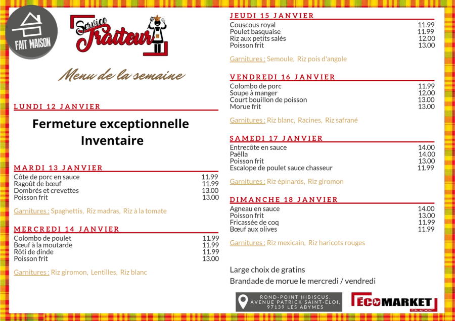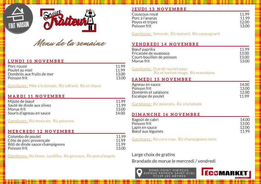 Menu de la semaine